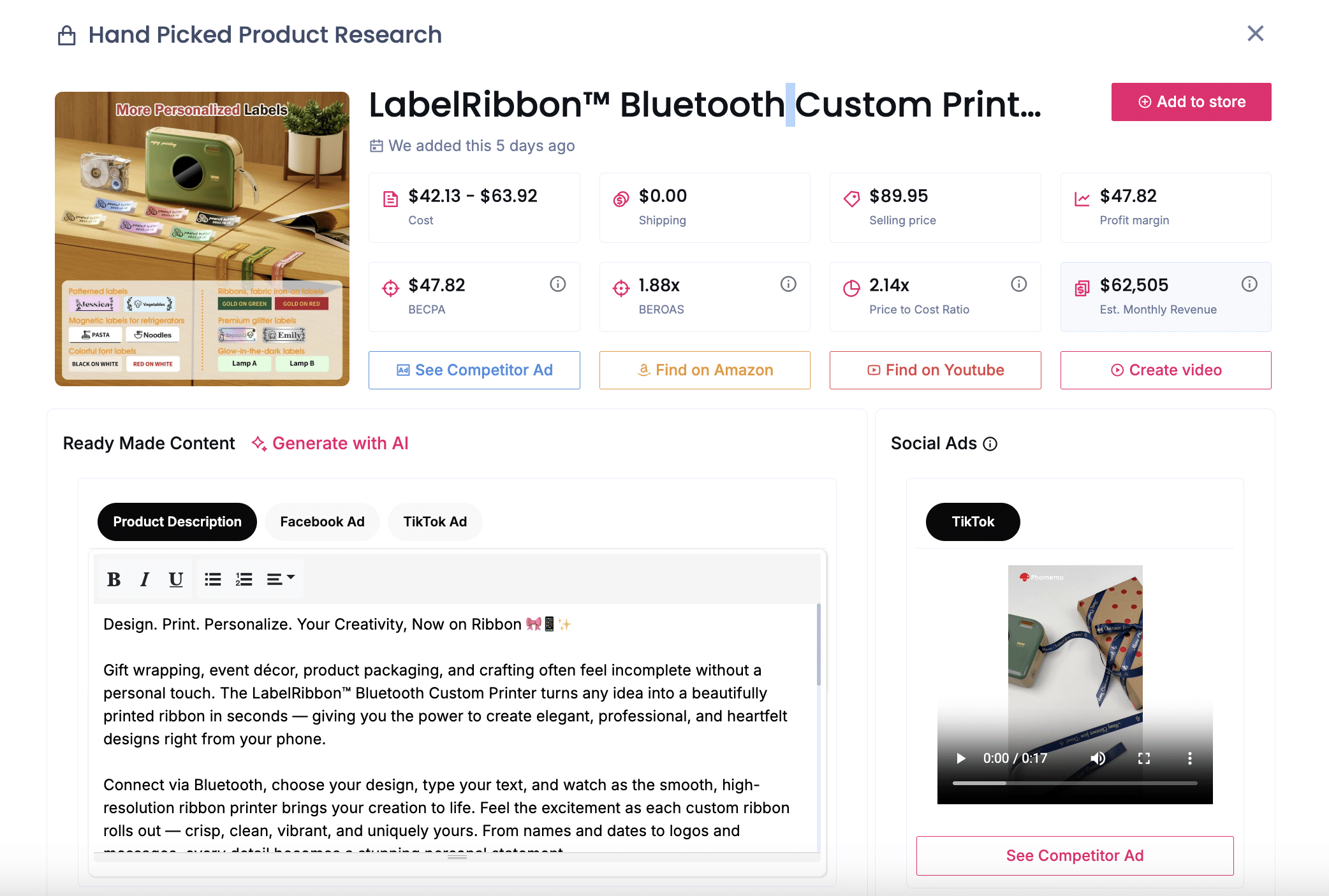 Once you’ve got the product live, it’s time to promote. TikTok and Facebook are excellent channels for this product — short videos showing creative uses of the label printer will grab attention and drive clicks.