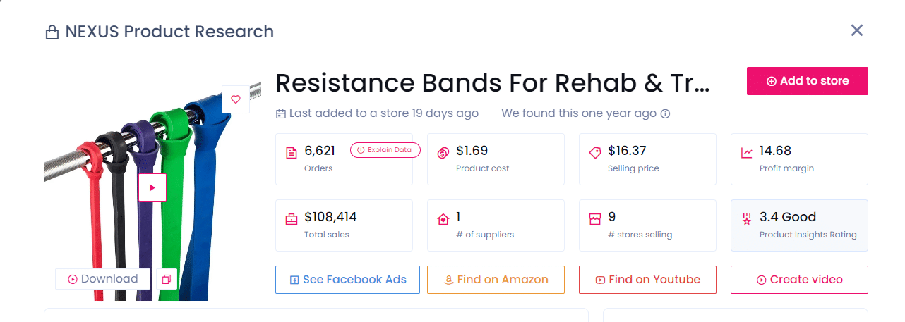 Bandas de resistencia siempre son un éxito y, con 6.537 pedidos en nueve tiendas populares, tienen una gran demanda. Puedes comprarlos por 1,69 $ al proveedor y venderlos por 16,37 $, obteniendo un beneficio de 14,68 $ por unidad.