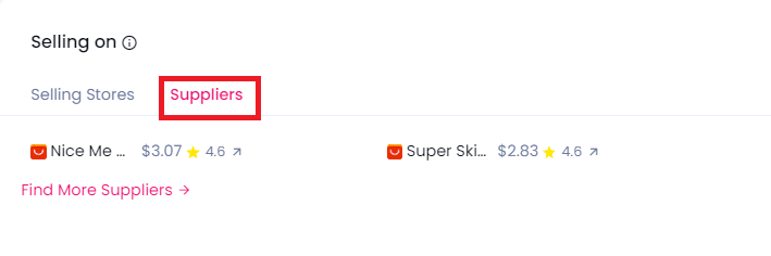 - Trouvez le bon fournisseur : Utilisez l’onglet Fournisseurs de Sell The Trend pour s’approvisionner facilement en ces meilleurs produits auprès de fournisseurs fiables et garder votre stock approvisionné avec les meilleurs.