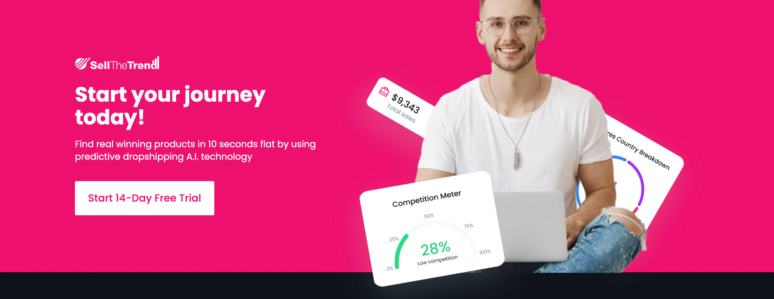 Inscrivez-vous à l’essai de 14 jours de Sell The Trend pour ne pas avoir à deviner ce qui est chaud. Vous le saurez. Vous suivrez les données, observerez les signaux et créerez un magasin à la pointe de la technologie que les clients adoreront.